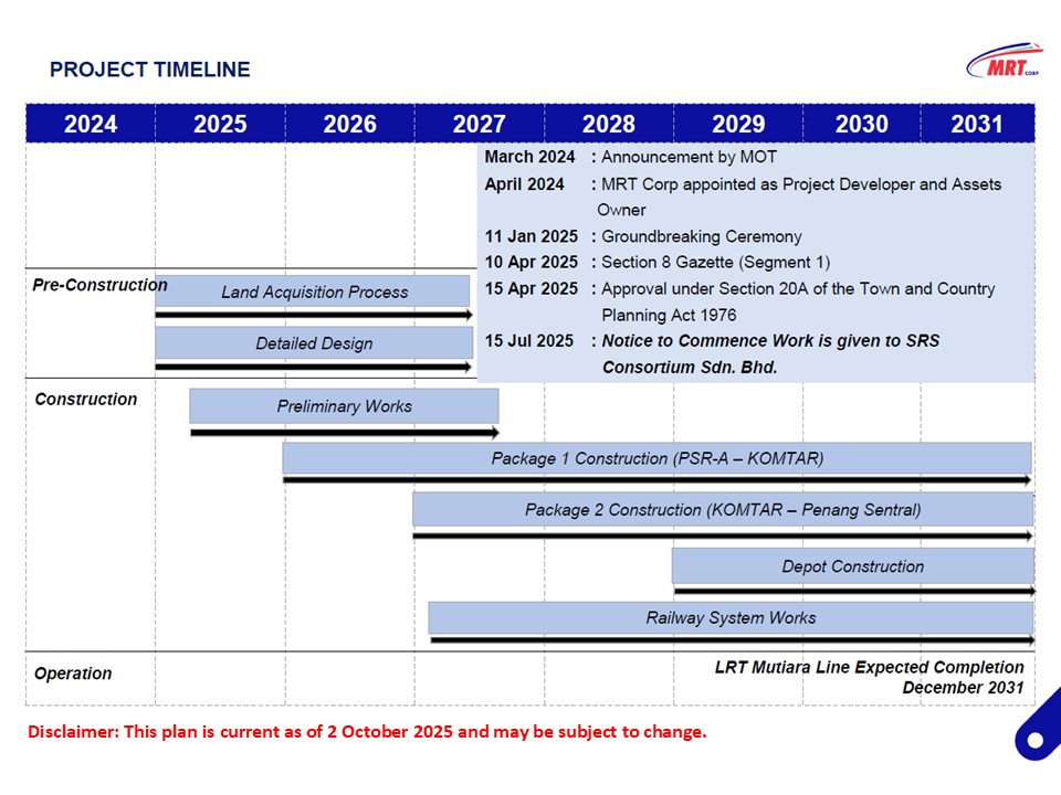 Speaking at an InvestPenang town hall session yesterday, attended by over 200 stakeholders from Bayan Lepas, Bayan Baru, Batu Maung, and Sungai Tiram, Zairil explained that early works—such as utility relocation, road widening, and site clearance—will commence this month. Full-scale construction is expected to begin by December.