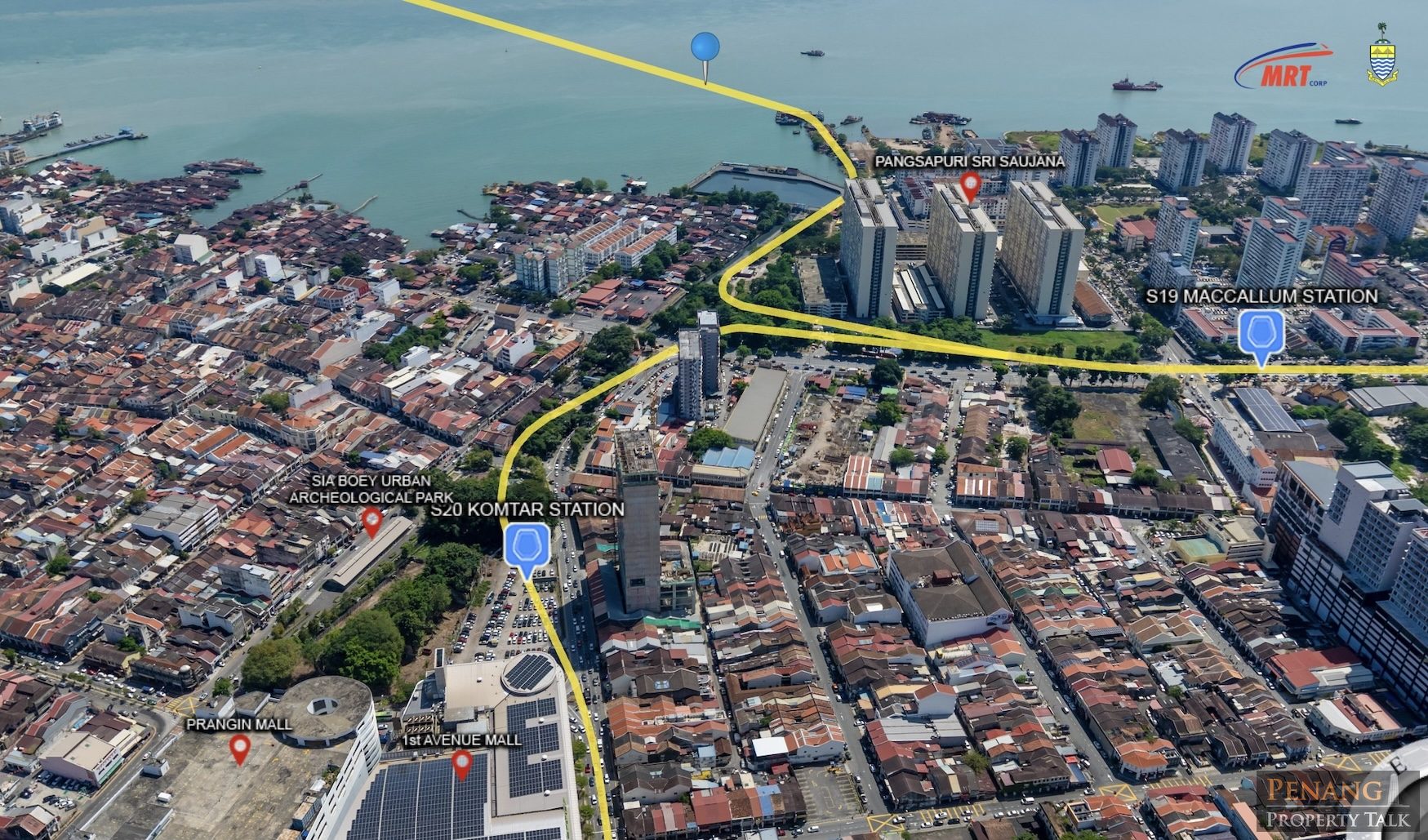 The revised alignment highlights a direct cross-strait connection between Penang Sentral in Butterworth and KOMTAR in George Town that can be completed in about 8 minutes on the LRT — a significant reduction compared with driving or bus services during peak hours.