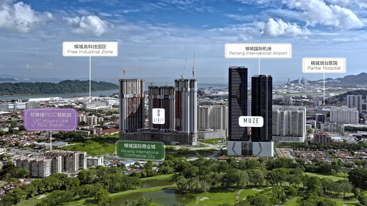 PICC’s location is the result of deliberate and strategic planning. It is positioned adjacent to Penang International Airport, integrated with the future LRT station, seamlessly connected to key arterial roads and major industrial hubs, and anchored by a comprehensive mix of commercial, retail, medical, and residential components.